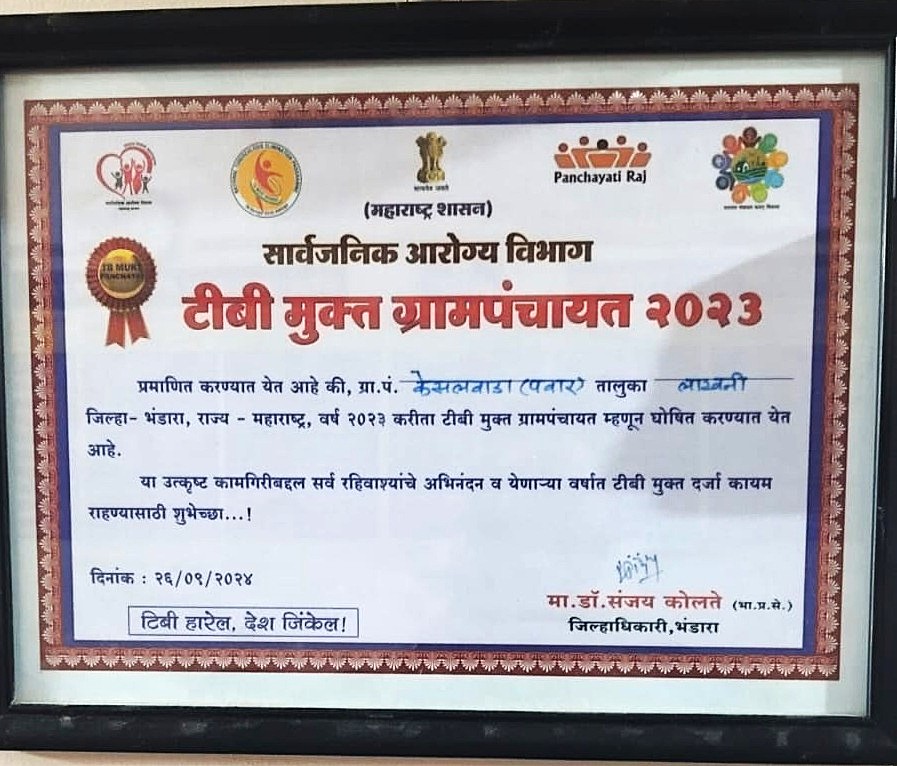 दि. २६ सप्टेंबर २०२३ रोजी केसलवाडा/पवार या गावाला "टी.बी. मुक्त गाव" हा प्रतिष्ठेचा पुरस्कार प्रदान करण्यात आला. क्षयरोगमुक्त भारत अभियानांतर्गत आरोग्य विभागाच्या सहकार्याने गावात विविध जनजागृती उपक्रम, टी.बी. निदान व उपचार शिबिरे, घरभेटी व रुग्णांच्या नियमित तपासण्या आयोजित करण्यात आल्या. ग्रामपंचायत, आशा कार्यकर्त्या, स्थानिक आरोग्य कर्मचारी व ग्रामस्थांच्या एकत्रित प्रयत्नांमुळे गावामध्ये टी.बी. रुग्णांचे प्रमाण शून्यावर आणण्यात यश मिळाले. या उल्लेखनीय कामगिरीसाठी शासनाने केसलवाडा/पवार गावाचा गौरव करत "टी.बी. मुक्त गाव" पुरस्काराने सन्मानित केले. हा पुरस्कार आरोग्य क्षेत्रातील गावाच्या प्रगतीचे प्रतीक असून, नागरिकांच्या सशक्त आरोग्यदृष्टीकोनाची साक्ष देणारा महत्त्वपूर्ण टप्पा आहे.