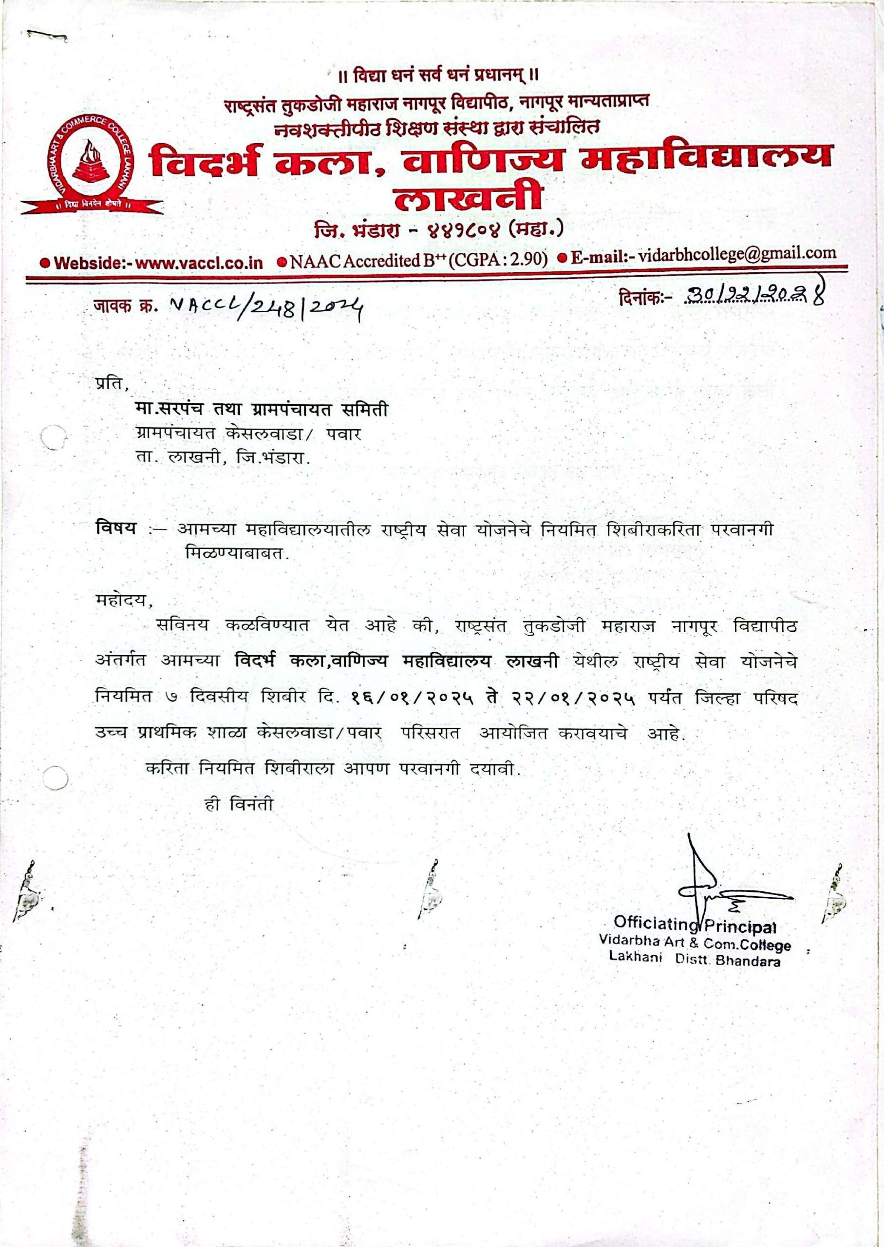 दि. 17 जून 2025 रोजी भंडारा जिल्ह्याचे जिल्हाधिकारी श्री. संजय कोलते यांच्या हस्ते केसलवाडा/पवार गावात वृक्षारोपण उपक्रमाची भव्य सुरुवात करण्यात आली. या उपक्रमांतर्गत 5000 वृक्ष लावण्याचे उद्दिष्ट ठेवण्यात आले असून, पर्यावरण संवर्धन, हरितग्राम निर्मिती आणि जैवविविधतेच्या संवर्धनासाठी हा एक महत्त्वपूर्ण टप्पा ठरला आहे. या कार्यक्रमात ग्रामपंचायत सदस्य, स्थानिक शाळा, स्वयंसेवी संस्था, शेतकरी आणि ग्रामस्थांचा मोठ्या प्रमाणावर सहभाग होता. वृक्षारोपणानंतर झाडांच्या देखभाल व संवर्धनासाठी विशेष समितीची स्थापना करण्यात आली असून, या उपक्रमामुळे गावात पर्यावरणपूरक वातावरण निर्माण होण्यास निश्चितच मदत होणार आहे.